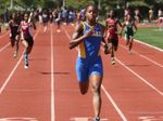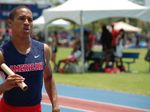 (Piper senior Andre Ewers sweeps the sprints at the 4A Region 4 Championships in a US#3 time of 10.34 (tie) and US#13 21.09w. Photo by Teri Bernhardt-Rodriguez)