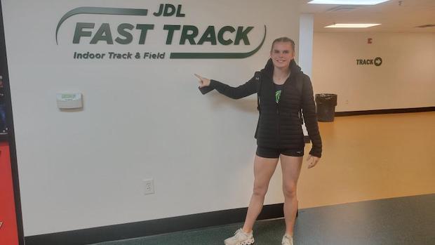 Vivian Stovall, a senior at the Bolles School competing for the Jacksonville Athletic Club, cleared a height of 12 feet and 9 inches on Saturday at the JDL Fast Track Indoor Facility in Winston-Salem, North Carolina to win the competition at the COROS Invitational.