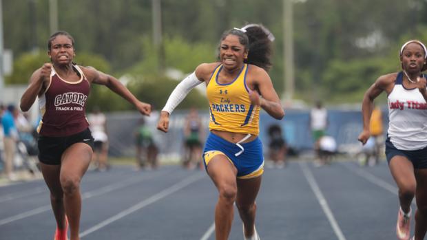 Mandarin's Jaylen Lewis hung on in the boys' 200m in another great finish. Lewis won in 20.59. Second went to Creekside's Josh Howell in 20.92 and third to Jayden McPherson of Viera in 20.96.