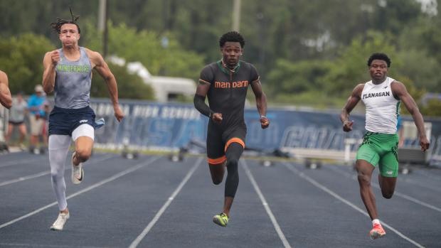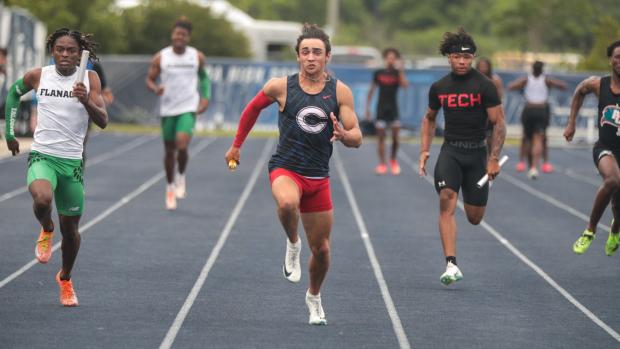 The boys from Christopher Columbus held off the boys from Flanagan to win the 4a Boys' 4x100m by .35 seconds. Columbus won in 40.45. Flanagan ran 40.70.