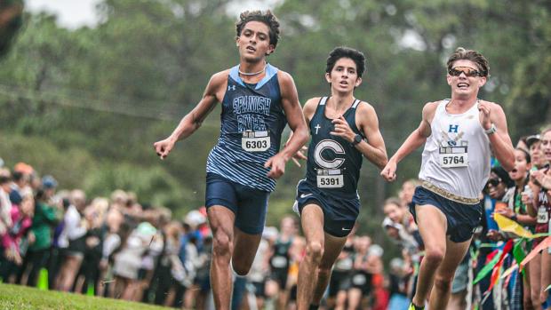 Senior Evan Spreitzer of Holy Trinity (right), senior Preston Sangely of Spanish River (left), and senior Diego Eseverri of Columbus (center) finished No. 3, 4, and 5, respectively.