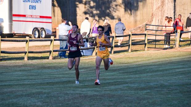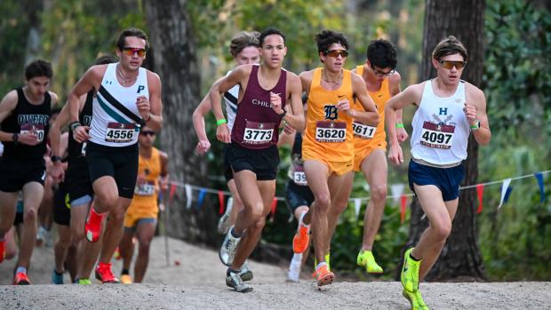 Mantecon led through the 2-mile in 9:31.8 with Hicks behind him in 9:32.10 and Spreitzer back in 3rd at 9:36.9. Veloso and Cuz had slightly fallen off the pace with Oviedo senior Colin Aysun (9:37.5), Cunningham (9:40.1), and senior Aiden Aysun of Oviedo (9:40.4), moving into the 4-6 positions respectively. Mantecon continued to press past the 2-mile with Spreitzer and Colin Aysun in pursuit. Hicks was starting to feel the pace just prior to the climb up the "wall" for the second time. Spreitzer continued his aggressive run with his eyes on Mantecon.