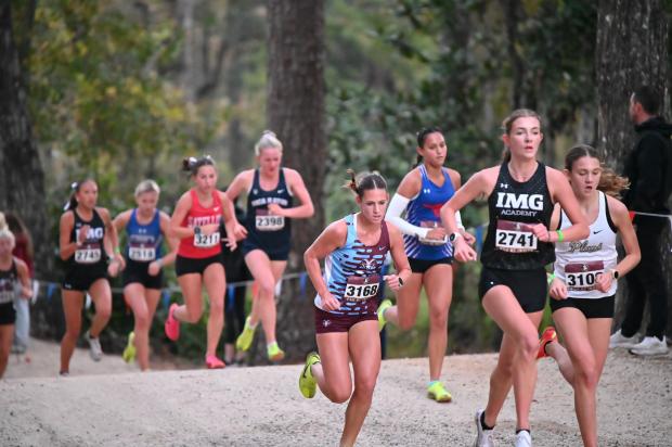 At the 2-mile Tomasic had increased her lead to just over 14 seconds, going through the 2-mile in 11:08.5. Graham of IMG had moved into second at 11:22.9. Eudaly had moved into 3rd, and Muller was 4th. Getting into the mix were senior Katelyn O'Brien of Boca Raton (5th), senior Celina Coryell of Satellite (6th), with Summers dropping to 7th. Seniors Addison Elwell of Viera and Stella Junius of Mt. Carmel (LA) had moved up into 8th and 9th, with Sydney Johnson of IMG in 10th.