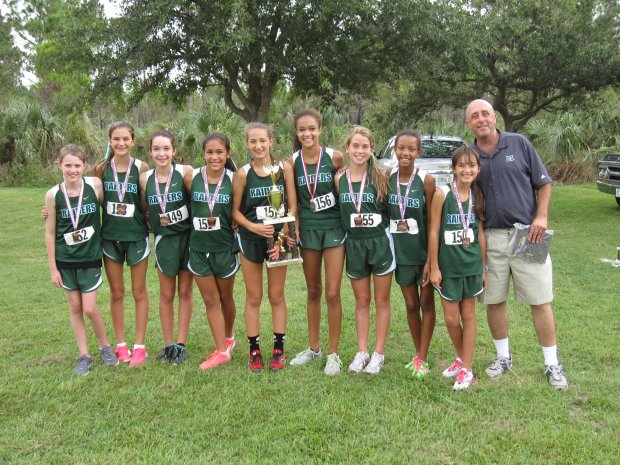 For an early season middle school meet the numbers of teams and competitors were low, as is usually expected, but there were still a few memorable performances in this smaller event. Most notably was the dominance exhibited by the Ransom Everglades MS varsity girl's team, especially their #1 finisher: Beatriz Ruan who gapped the rest of the field by 1 minute and 45 seconds as she led her team to a dominant victory; her teammates came in 2-4-5-7-8-9 behind her. Ruan's official time was 12 minutes and 39 seconds. This was the third time in four years that the Ransom girls brought home the team championship.