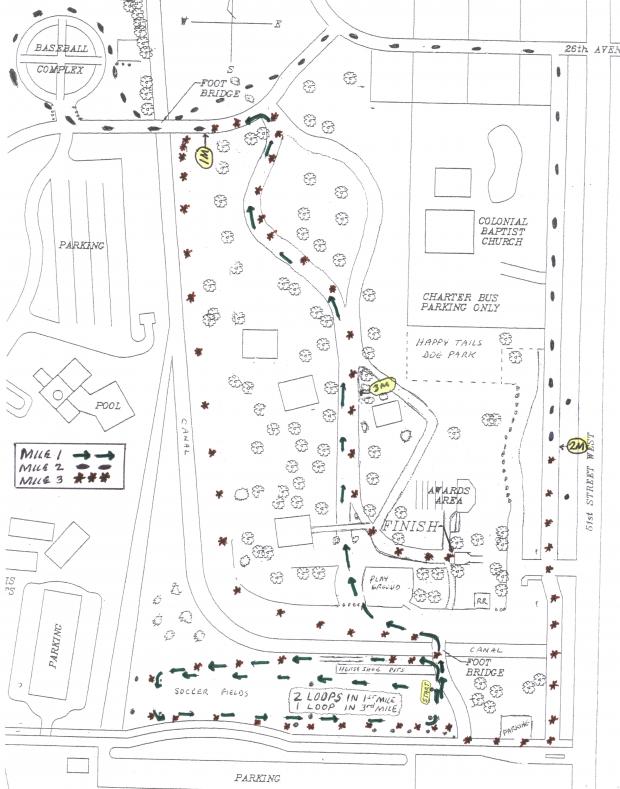 Bus parking: Colonial Baptist Church, 2616 51st St W, Bradenton, FL 34209 or in the main entrance at GT Bray Park at 51st St W & 33rd Ave Dr W. There will be no bus parking or drop offs or turning around at the 51st Street Park (dog park, amphitheater, & finish area) entrance.